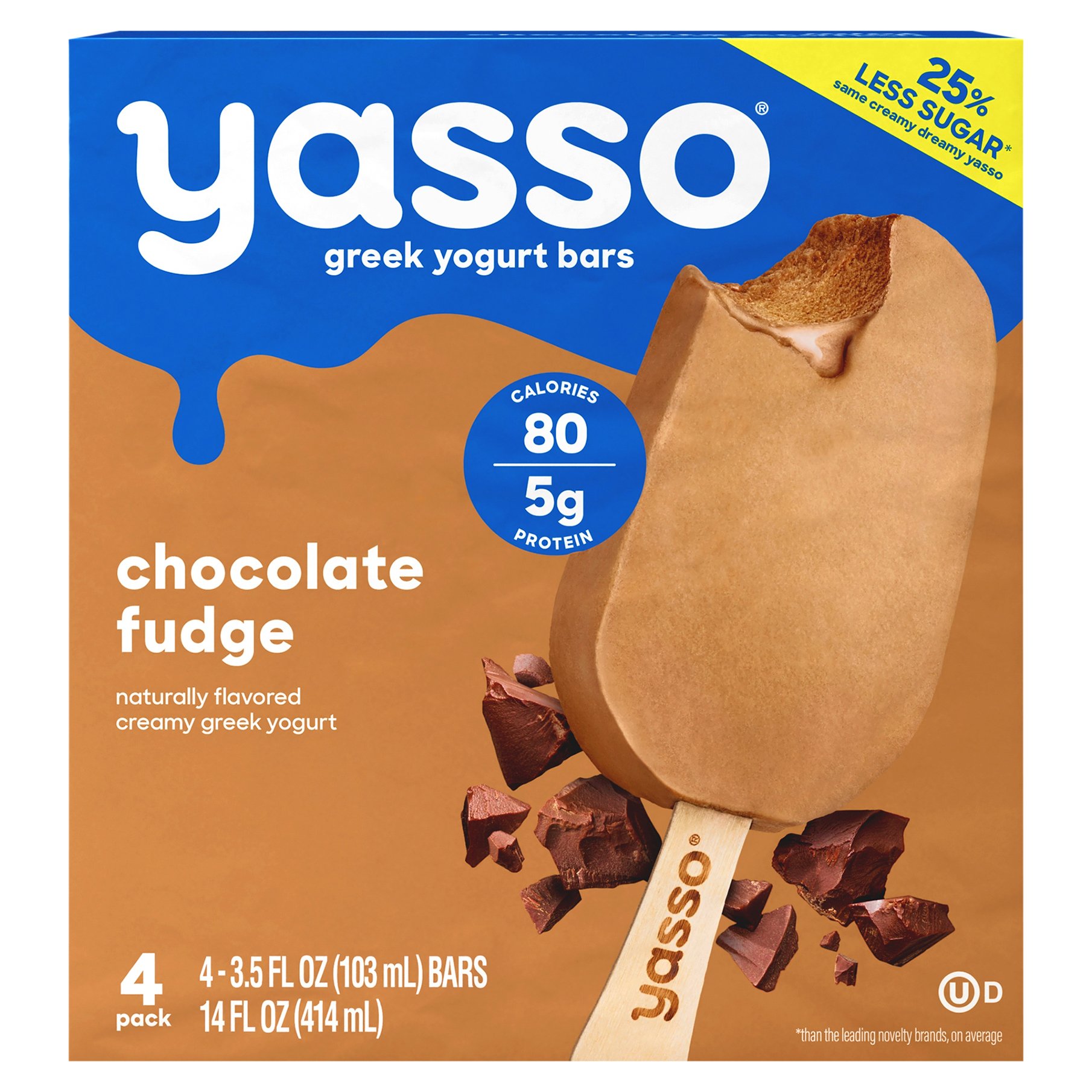 Nonfat milk, greek yogurt (nonfat milk, culture), sugar, milk protein concentrate, . Personalized health review for yasso frozen greek yogurt, chocolate fudge: 80 calories, nutrition grade (b minus), problematic ingredients, and more. 2000 calories a day is used for general nutrition advice. *percent daily values are based on a 2,000 calorie diet.